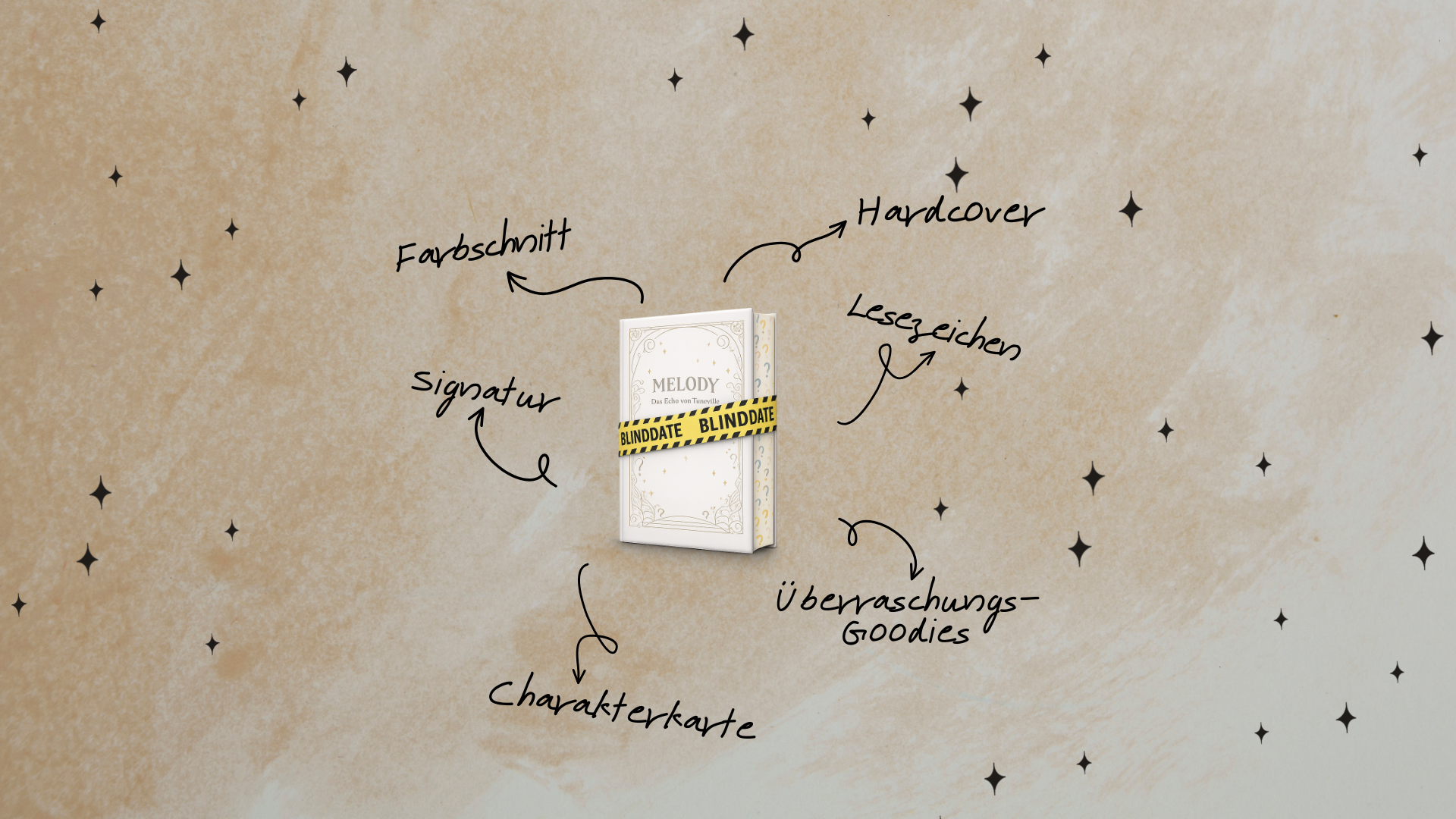 "Melody - Das Echo von Tuneville" Signiertes Hardcover mit Farbschnitt, Lesezeichen, Charakterkarte und Überraschungs-Goodies