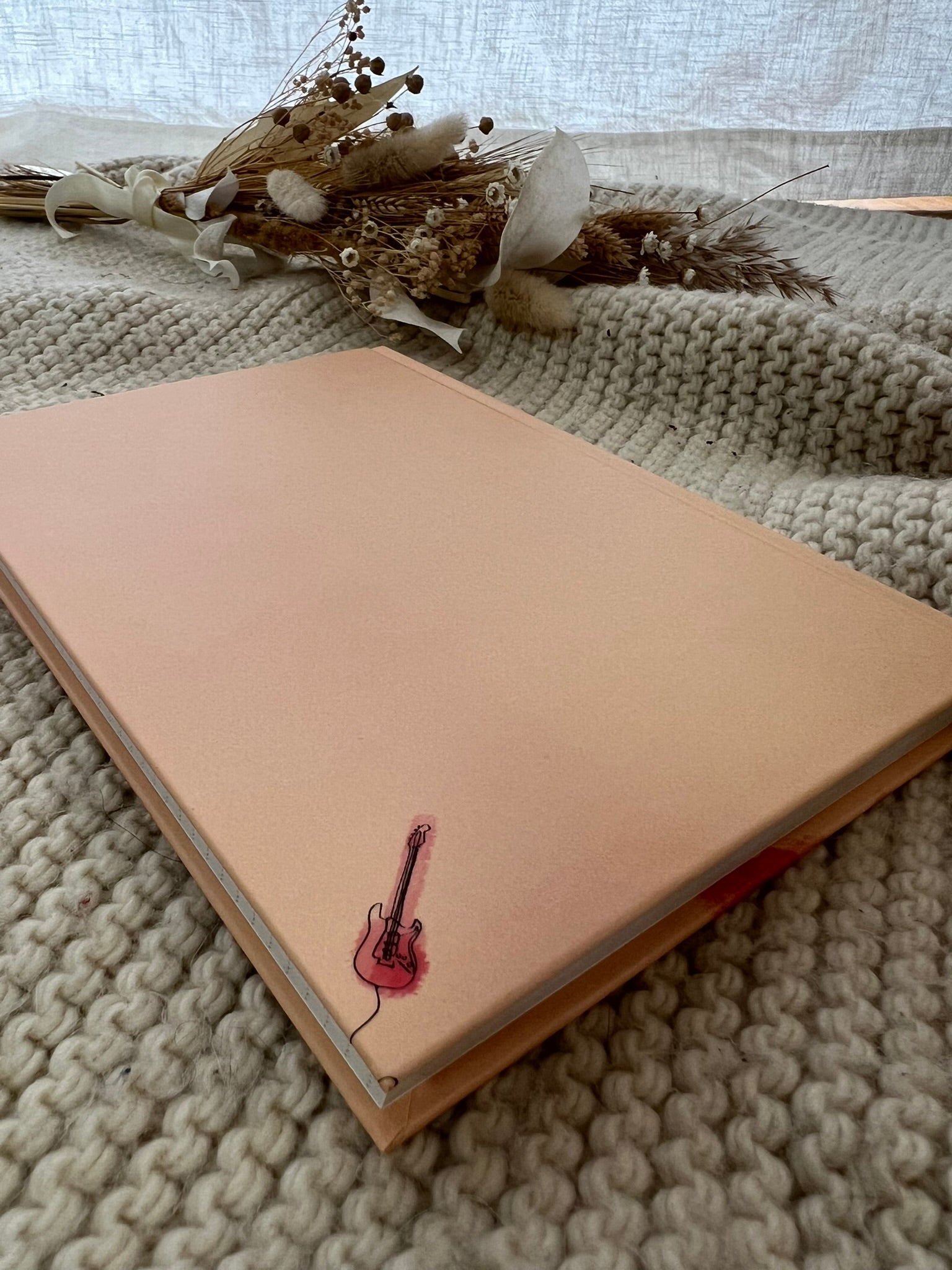 Notizbuch HÖRMEINKLANG | DIN A5 Hardcover mit Mikrofonpflanze und Zitat "But I will live my little rockstar dream" | lachsfarben